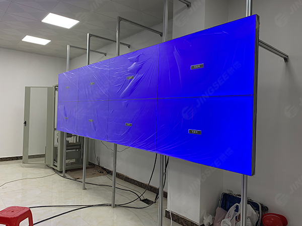 我司為青島市山東海事局安裝了49寸3.5mm 2*4 液晶拼接屏,采用的是3.5mm拼縫,品牌是格利圖。 青島市山東海事局需要在監控室安裝一塊大屏,用來顯示監控畫面。我司高級工程師在現場勘查