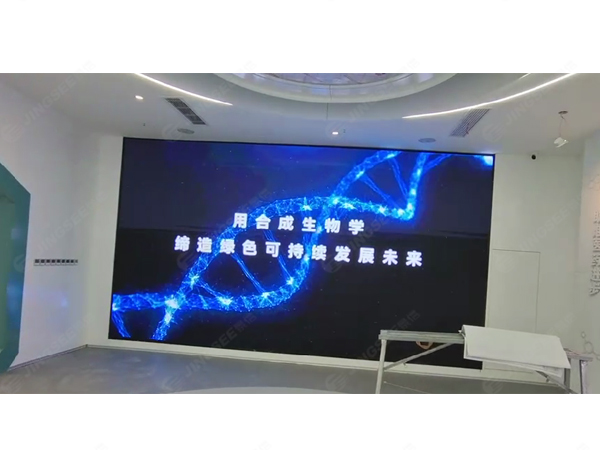 我公司為山東淄博金城生物醫藥產業園安裝了55寸2*2液晶拼接屏兩套,采用的是3.5mm拼縫,1套P2 全彩LED顯示屏,兩套P2.5 全彩LED顯示屏,六套全息成像柜,一套豎向透明拼接屏柜,一套滑軌屏